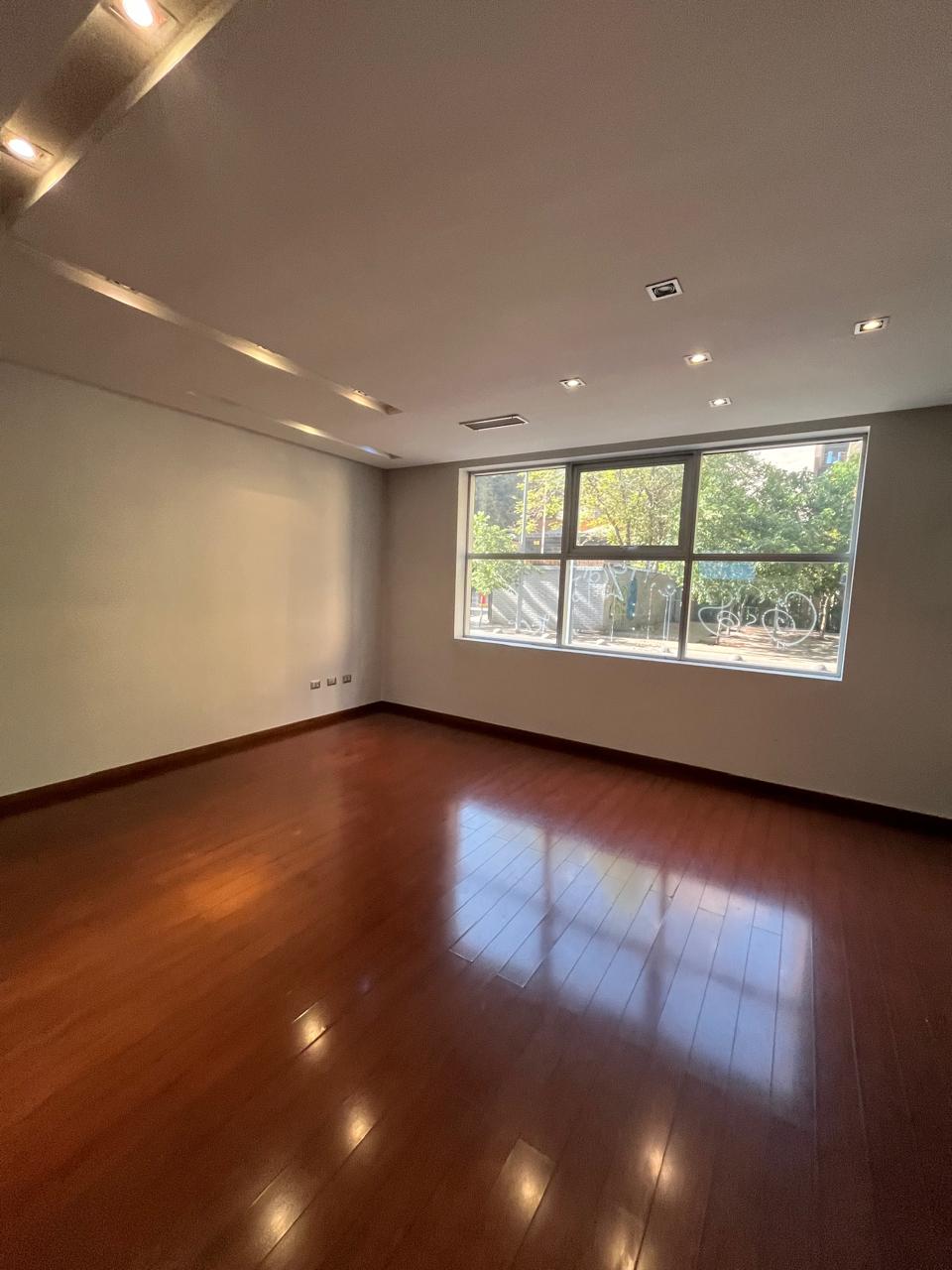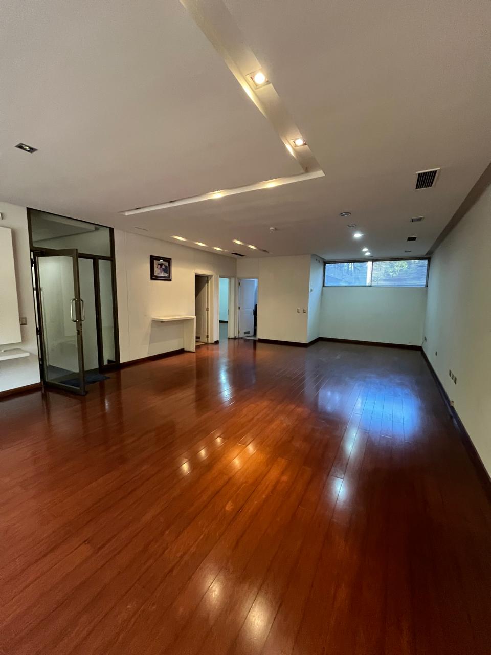 Amplia sala, con piso de madera para habilitar áreas de trabajo.